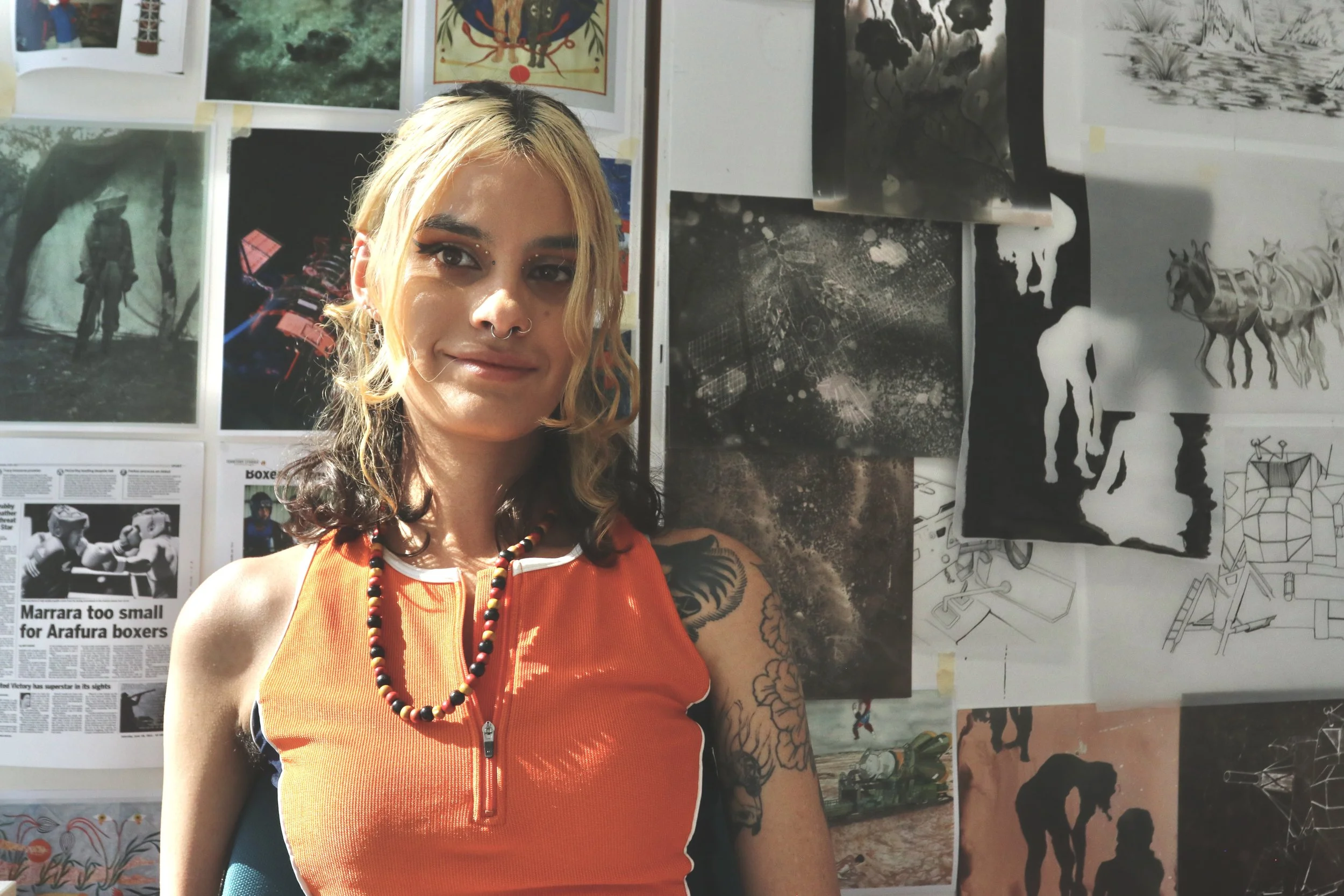 Chelsea Carkeet (they/them) is a Yanyuwa artist with strong kinship ties to Gulumerridjin (Larrakia) and Wagiman Country, and has a diverse cultural background including Māori, Chinese, and English heritage. Based in Magandjin (Brisbane), their practice speculates on their ancestral narratives through an Indigenous futurist lens. Using fantastical, sci-fi inspired imagery, Carkeet reflects on Western archival traditions to re-imagine how family stories are transformed in the future.