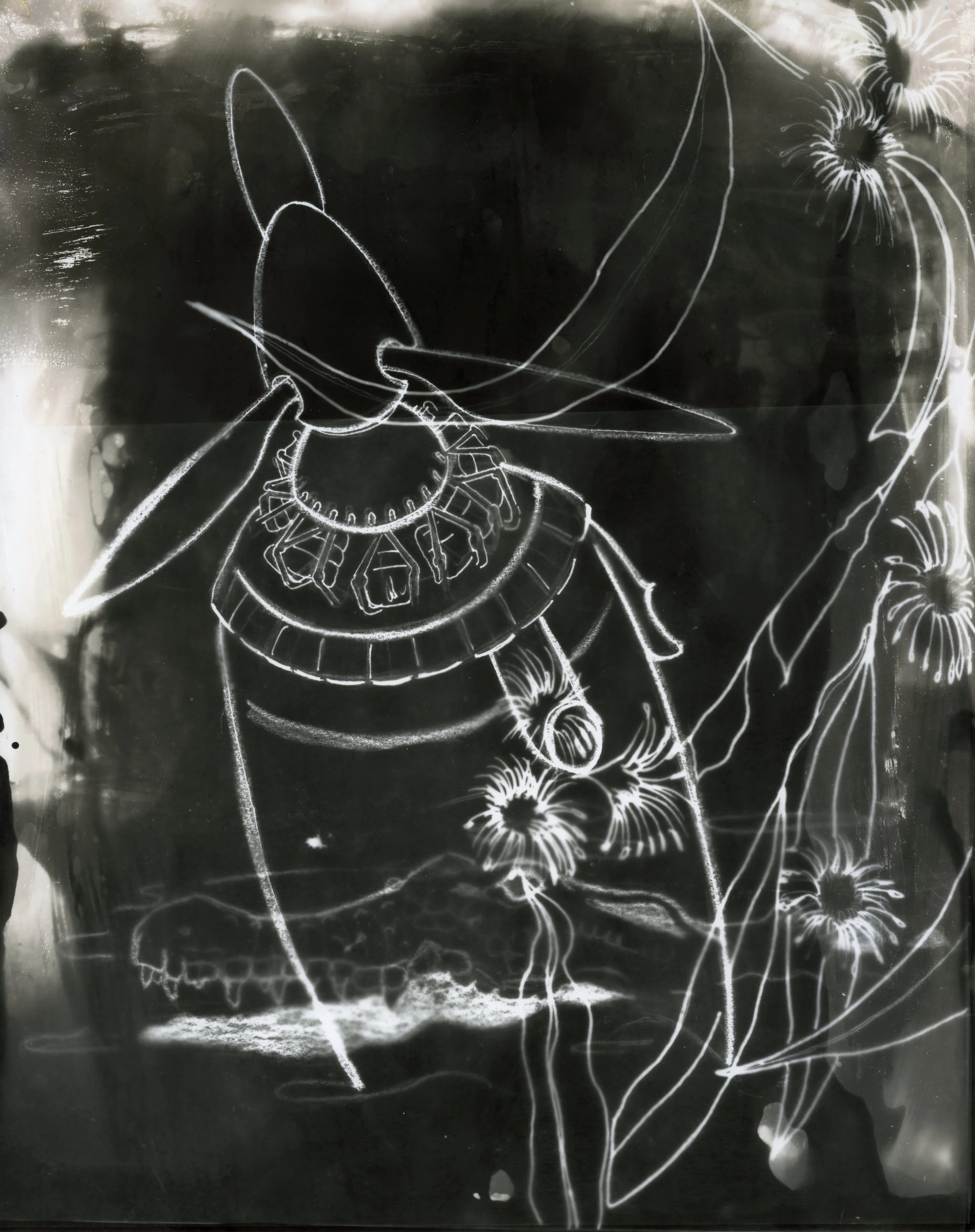 Chelsea Carkeet, Ground Zero (Silver Gelatin edition), 2024, cliché-verre and chemigram on silver gelatin print, exposure time: 5 secs, 20.32cm x 25.4cm, photo by artist.