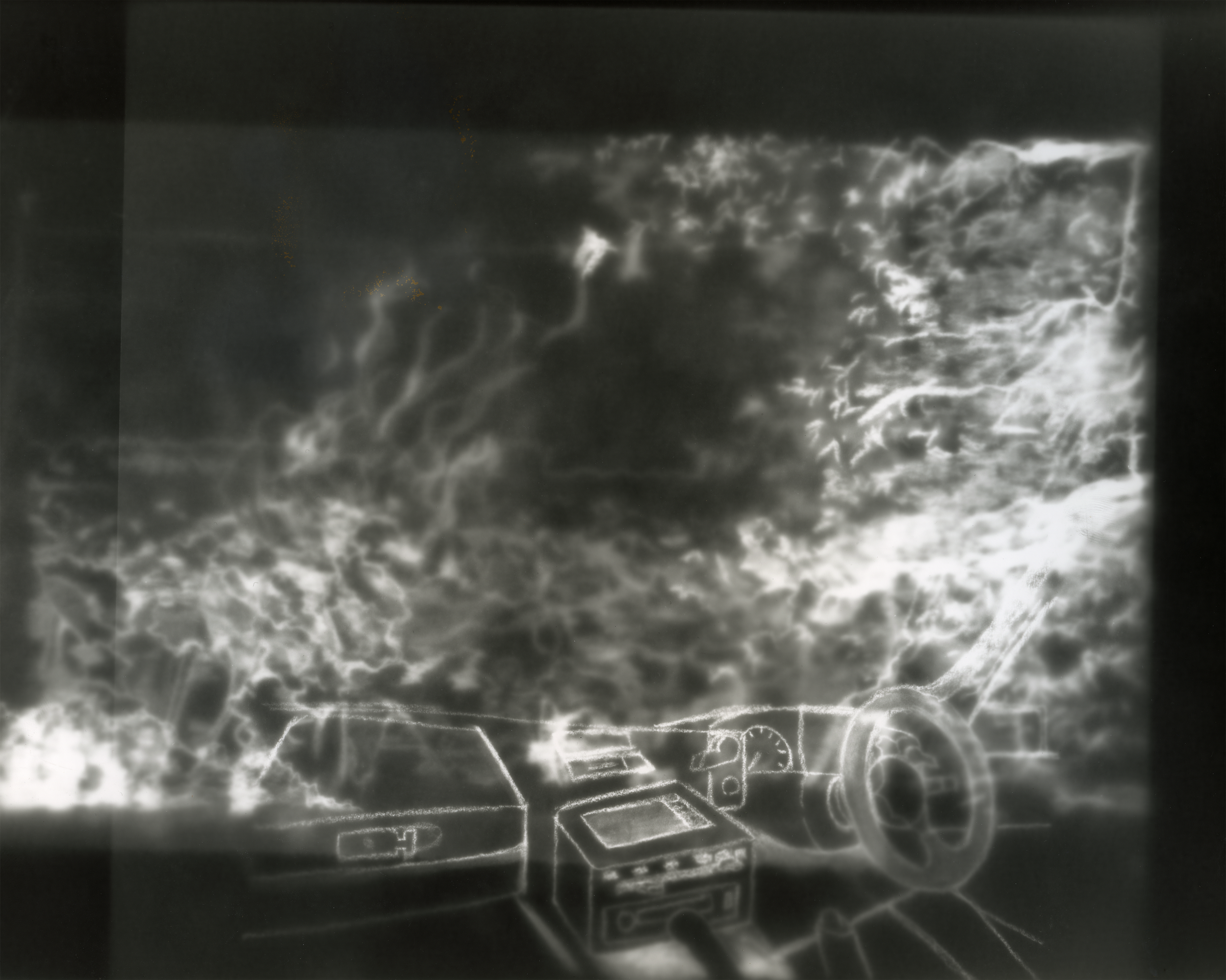 Chelsea Carkeet, Driving on Country, 2024, cliché-verre on silver gelatin print, exposure time: 3 seconds, 20.32cm x 25.4cm, photo by artist.